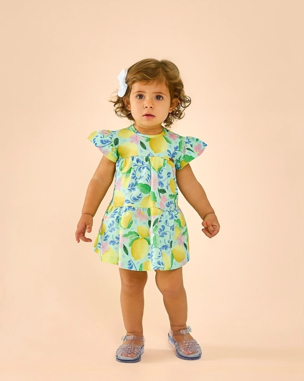 Vestido Bebê com Manga e Babado com Calcinha - Limão